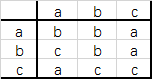 定义于字母表∑{a,b,c)上的乘法表如表所示: